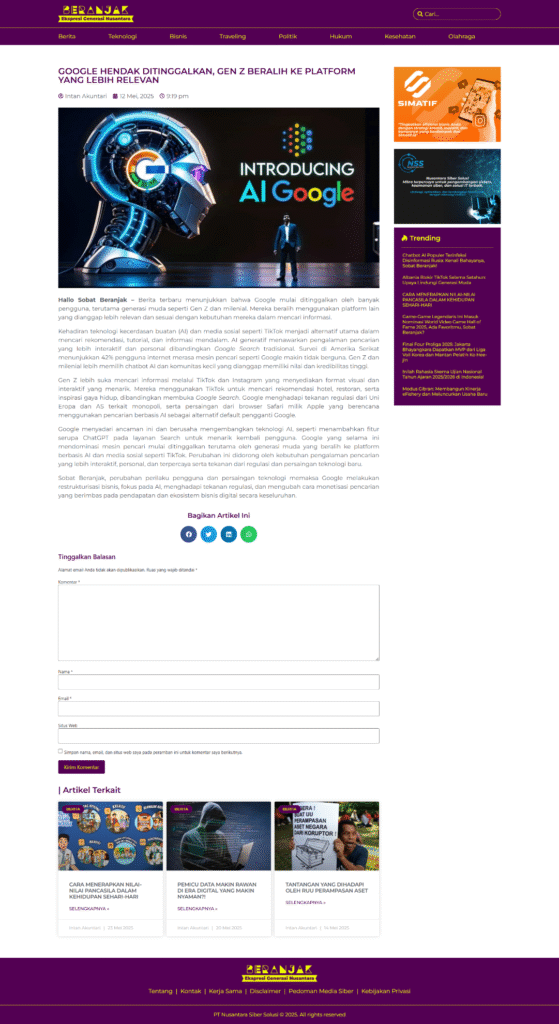 Beranjak is a contemporary online news and media platform, striving to deliver timely, relevant, and engaging news content to a broad audience. They aimed to establish a robust, user-friendly, and highly dynamic website that could handle vast amounts of daily content while ensuring an optimal reading experience for their growing readership.