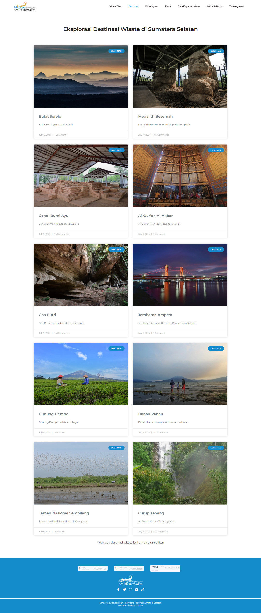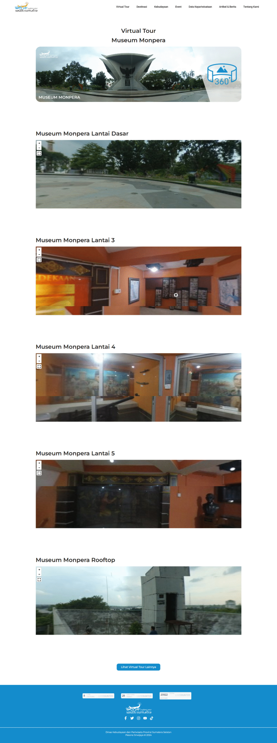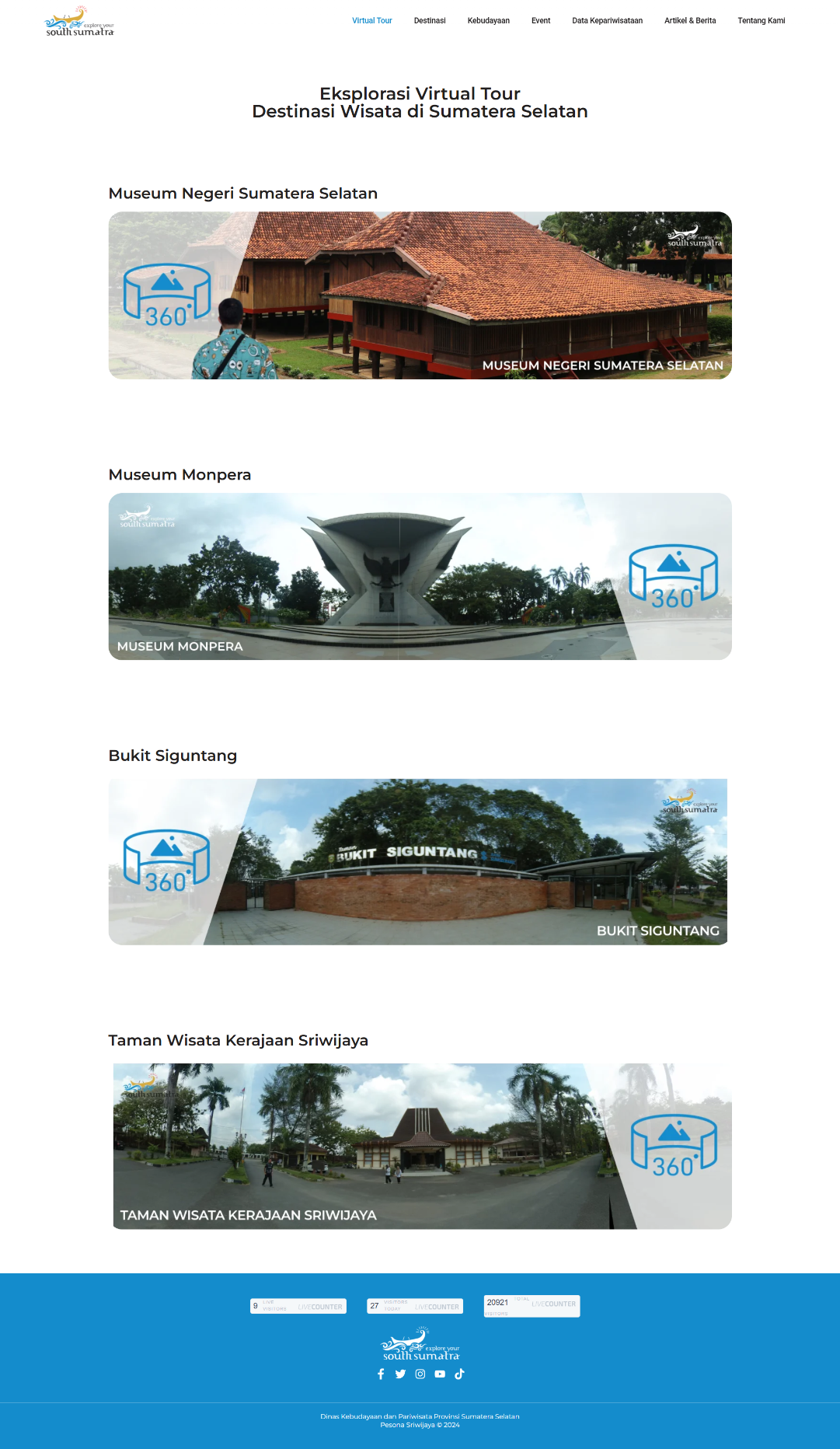 The Pesona Sriwijaya website has successfully transformed the digital presence of South Sumatra’s tourism sector. The 360 Virtual Tour has garnered significant attention, increasing user engagement and providing a unique value proposition for potential visitors. The comprehensive catalog and up-to-date information have made the website the go-to reference for travelers, leading to increased awareness and interest in the region’s attractions and events. This project effectively positions South Sumatra as a modern, accessible, and culturally rich destination, contributing directly to the province’s tourism promotion goals and enhancing its global appeal.