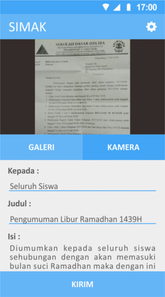 The implementation of the SIMAK application at SD Yayasan IBA significantly enhanced communication efficiency between the school and parents. Parents now receive timely notifications for announcements and homework assignments, which were often missed previously. The application also reduced the school’s administrative burden in manual information distribution, allowing for a greater focus on teaching and learning activities. While specific metric data from 2018 is unavailable, this project qualitatively strengthened parent involvement in their children’s education and fostered a more connected school environment.